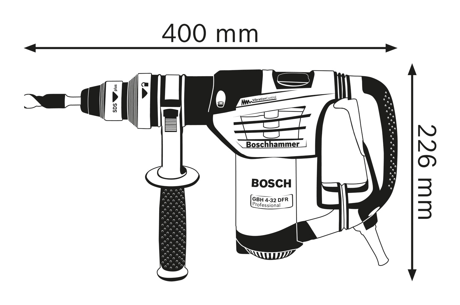 - Nízké hodnoty vibrací pouhých 12 m/s² pro práci bez únavy díky tlumení vibrací Bosch Vibration Control